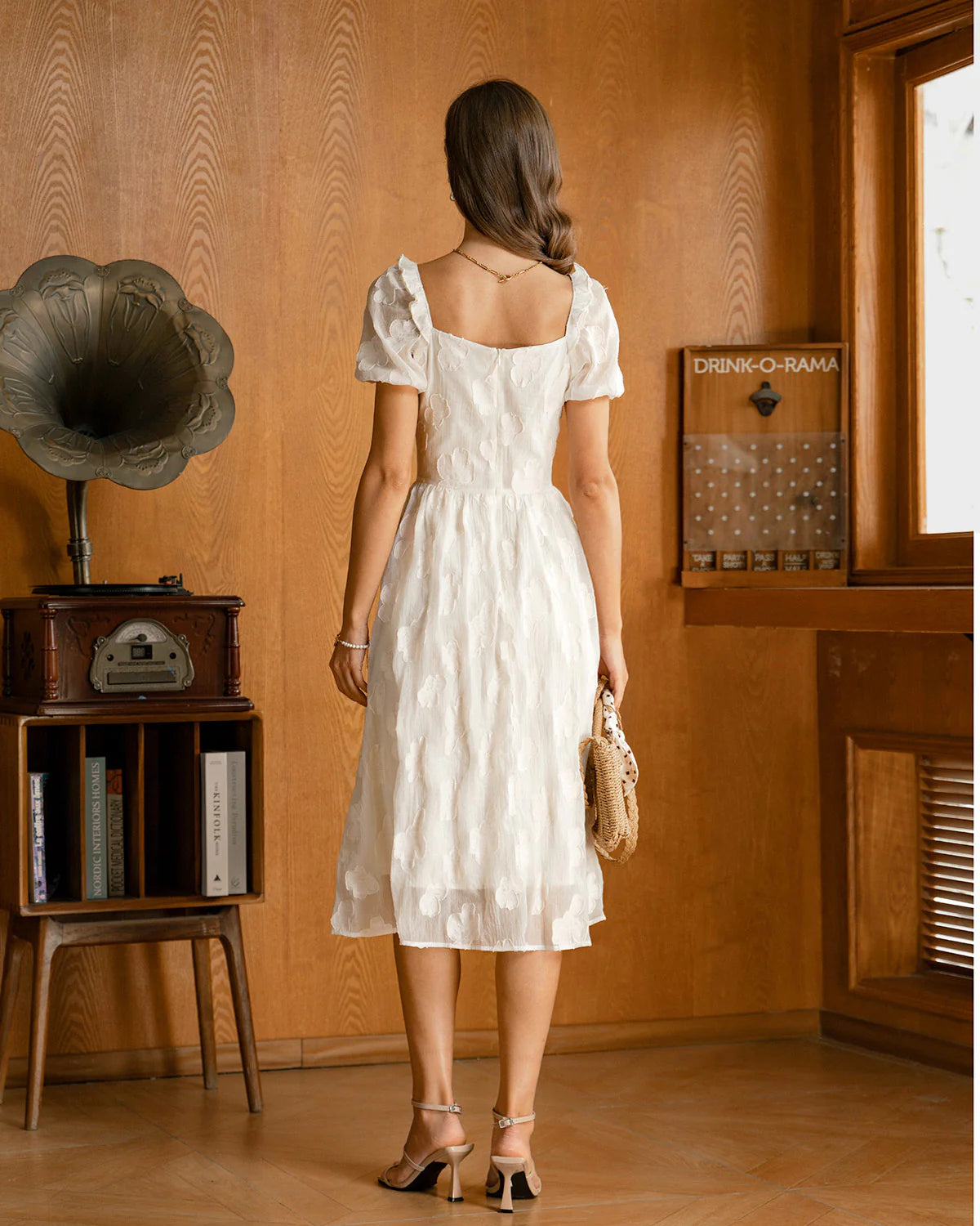 Featuring a flattering square neckline, soft puffed sleeves, and a flowing midi-length skirt, this dress creates a graceful, feminine silhouette. Crafted from lightweight, breathable fabric, it's perfect for everything from brunch dates to garden parties.