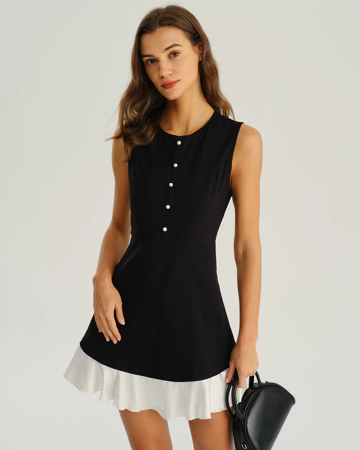 - Embellishment: Button, Contrasting colors, Splicing