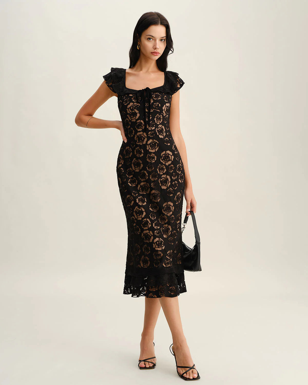 This is the dress that celebrates the female form. We designed this black mermaid midi dress for the woman who wants a silhouette that stops traffic.