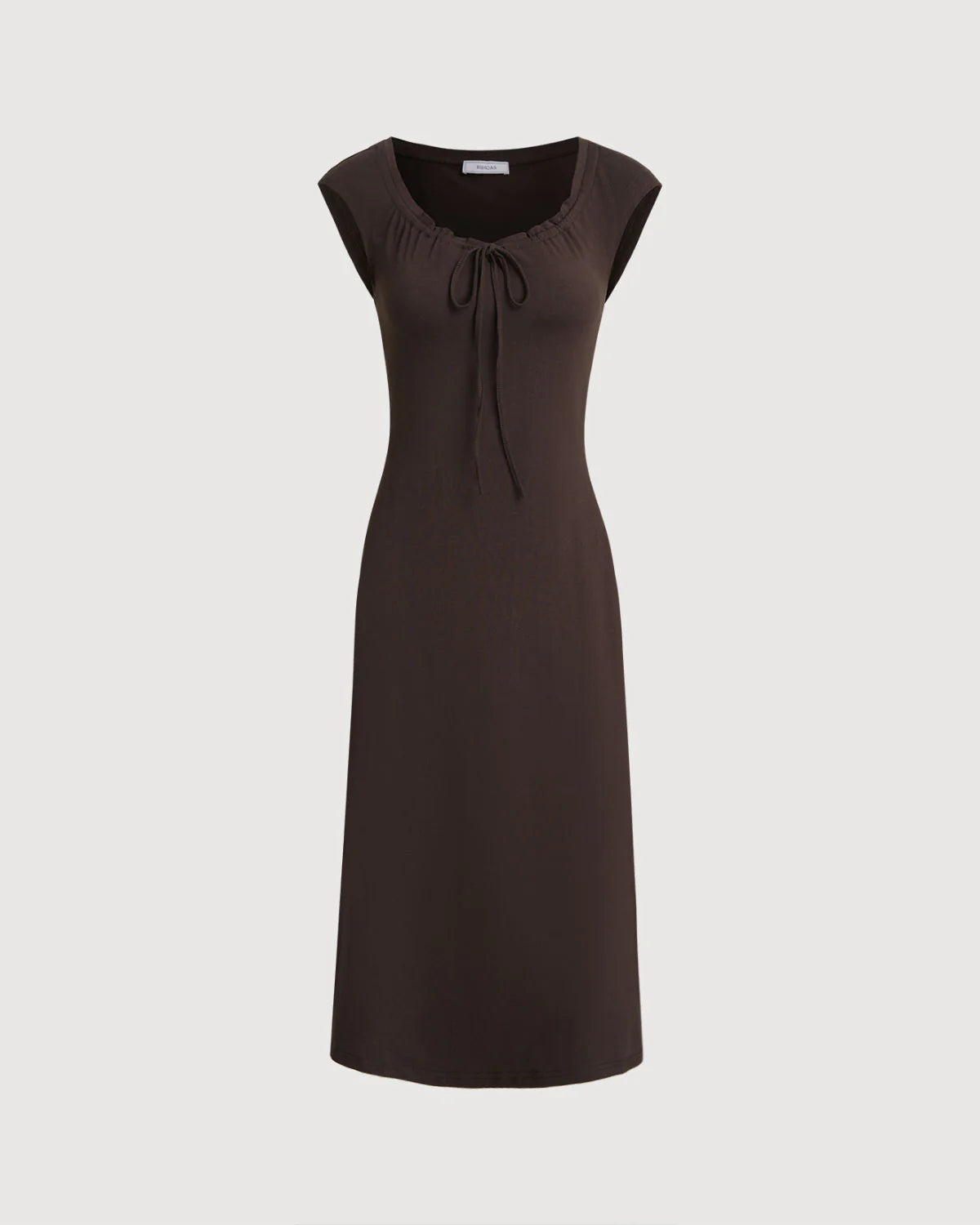 This is the dress that proves comfort can be incredibly chic. We designed this brown midi dress to be the ultimate minimalist staple, channeling a sophisticated 90s aesthetic with its clean lines and rich, earthy tone.