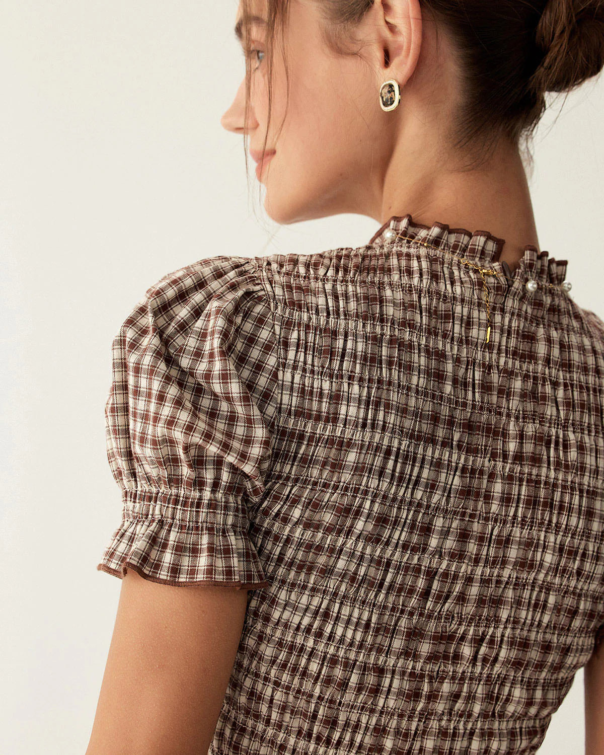 Featuring a warm coffee-toned plaid pattern, this dress exudes a cozy yet fashionable appeal. The puffed sleeves add a touch of femininity and volume, balancing the fitted bodice for a flattering silhouette. With its mini length, this dress is perfect for both casual and dressy occasions.