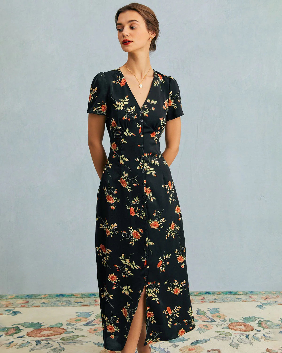 This is a perfect choice for any occasion. Its slim fit accentuate your curves and make you feel confident and beautiful. The button, zipper and floral print design adds a feminine touch and makes this dress perfect for any occasion. Whether you're going out on a date or attending a formal event, this is sure to turn heads and make you feel fabulous.