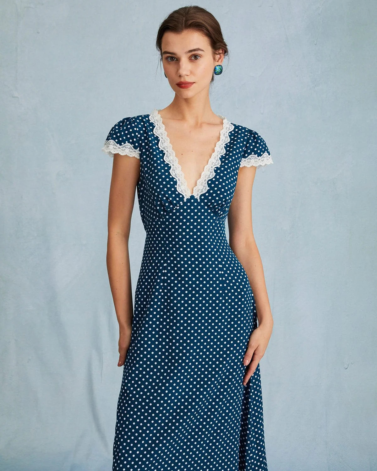 This is a perfect choice for any occasion. Its high waisted and slim fit accentuate your curves and make you feel confident and beautiful. The ruched, lace and polka dot design adds a feminine touch and makes this dress perfect for any occasion. Whether you're going out on a date or attending a formal event, this dress is sure to turn heads and make you feel fabulous.