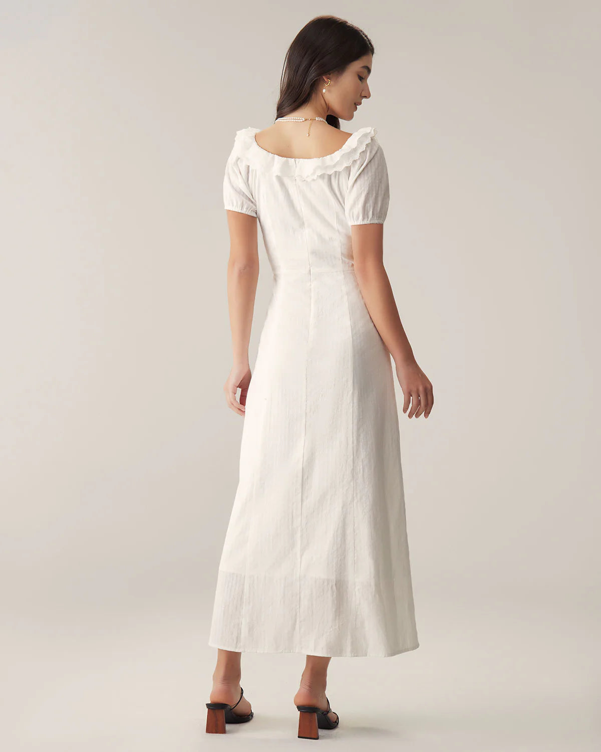 Featuring delicate floral embroidery and romantic puffed sleeves, this dress blends timeless charm with modern flair. The flowing maxi silhouette flatters every figure, while the cinched waist creates a graceful, feminine shape. Perfect for evening gatherings, garden parties, or any occasion where you want to make a stylish statement.