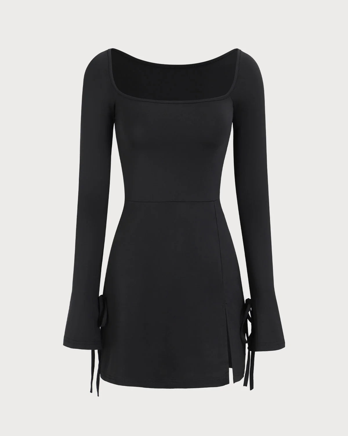 This showcases a sleek square neckline and fitted long sleeves, providing a flattering and modern silhouette. Made from a soft, stretchy knit fabric, it offers both comfort and style, making it perfect for any occasion.